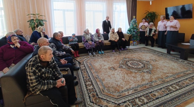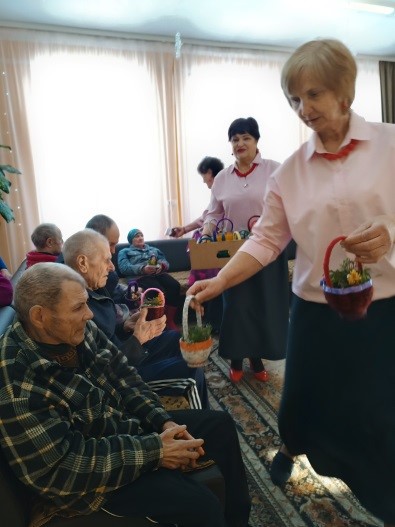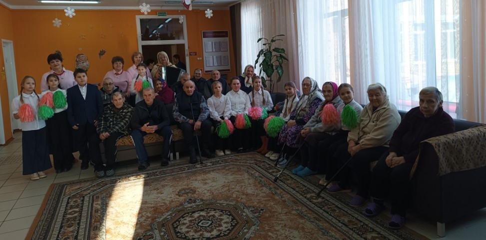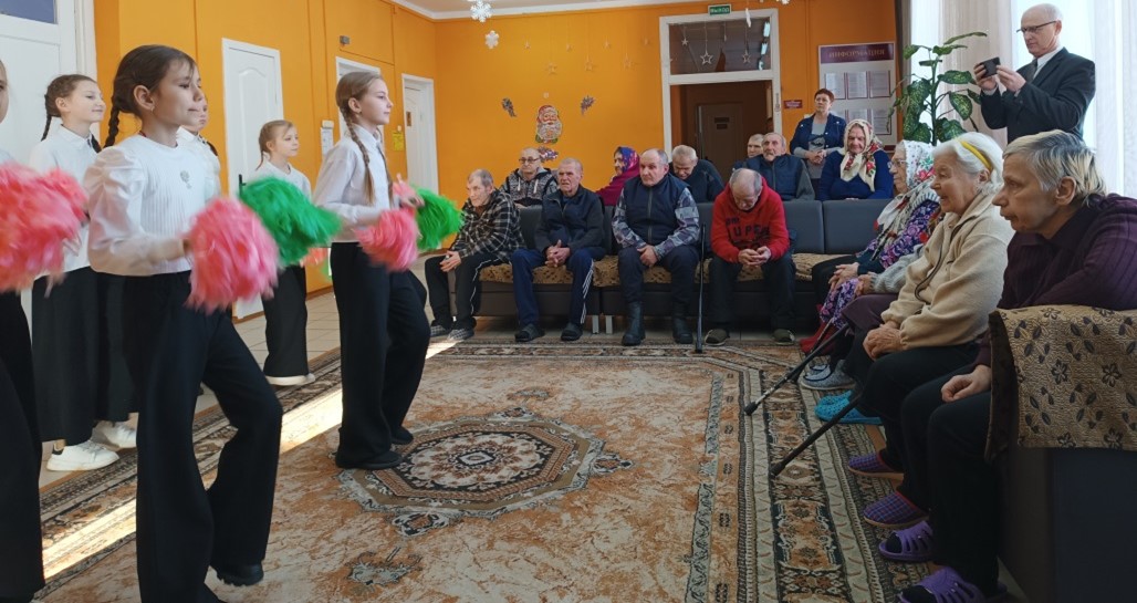 Мероприятие стало настоящим праздником души, наполненным улыбками, песнями и искренними пожеланиями. Ученики школы подготовили яркую программу, в которой исполнили народные и современные песни, танцы, придавая мероприятию особую атмосферу радости и теплоты. Волонтеры  «серебрянного» возраста подарили проживающим корзинки, сделанные своими руками. Этот жест заботы и внимания стал воплощением истинного духа праздника и внимания к каждому, кто нуждается в тепле и поддержке.