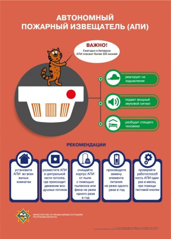Автономный пожарный извещатель (АПИ) – свою эффективность этот прибор доказал не раз. Принцип работы извещателя очень прост: с помощью чувствительных элементов прибор реагирует даже на малейшую концентрацию дыма, будь он от источника огня внутри дома или же проникает извне через строительные конструкции, входные двери, окна. АПИ подает мощный звуковой сигнал, способный разбудить даже спящего человека, тем самым позволяет обнаружить опасность в кратчайшие сроки и принять все возможные меры по защите семьи и имущества от пожара. Именно поэтому наличие автономного пожарного извещателя в Вашем доме – необходимое условие личной безопасности!